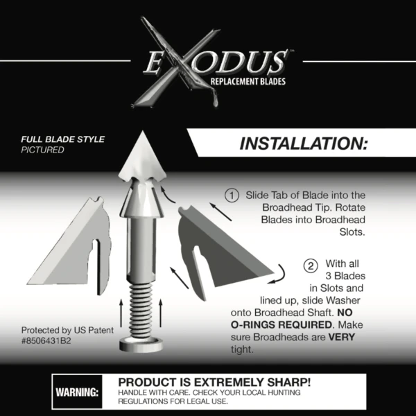 WARNING: Exodus Replacement Blades are made from Hardened Stainless Steel and are Extremely Sharp! **Each Pack Includes 9 Blades & 3 Washers**